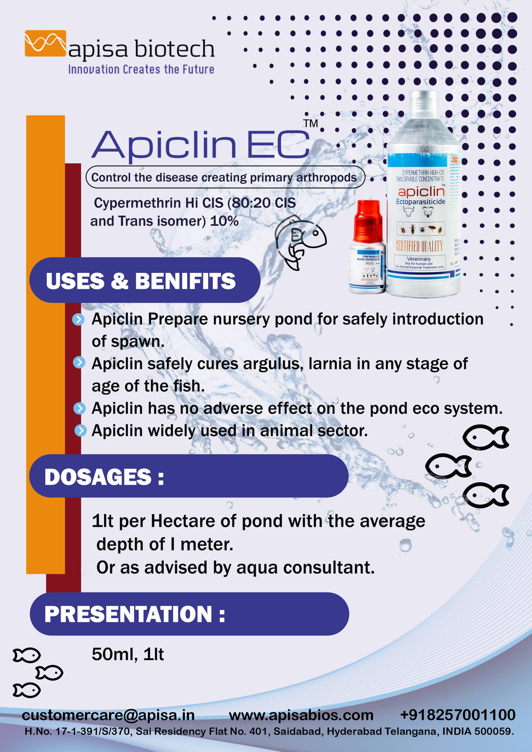 Apiclin has no adverse effect on the pond eco system.